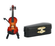 Miniatűr hegedű vonóval, állvánnyal díszdobozban